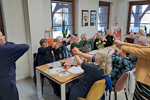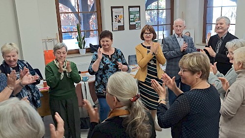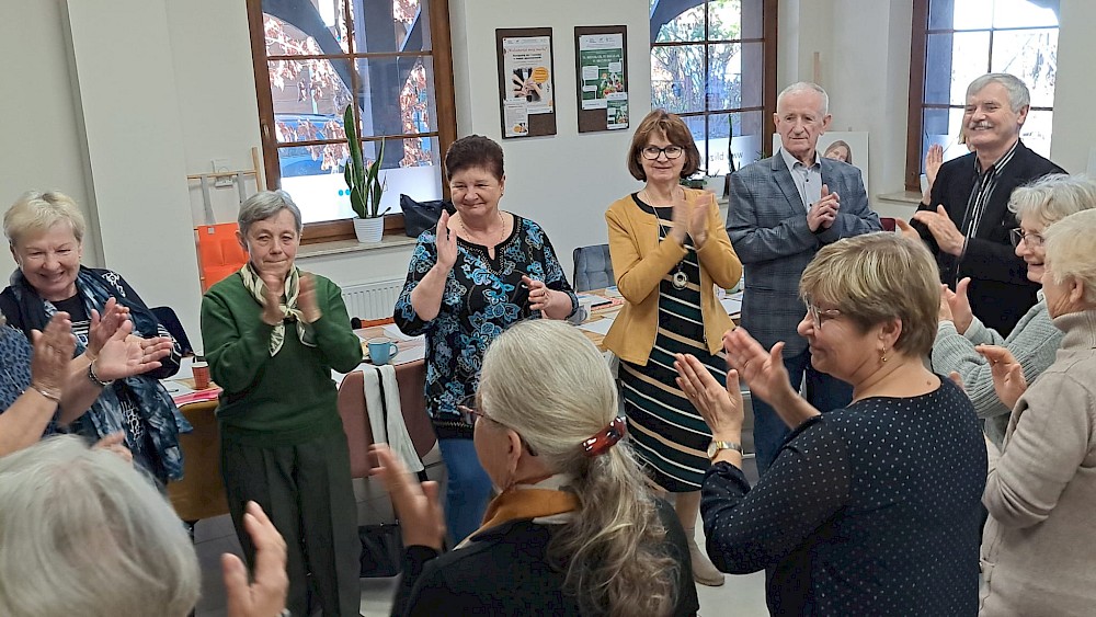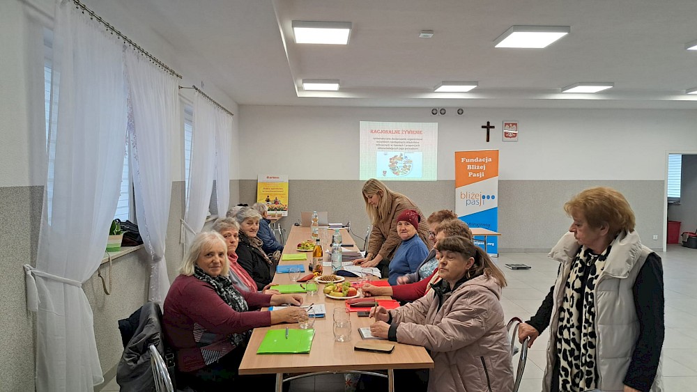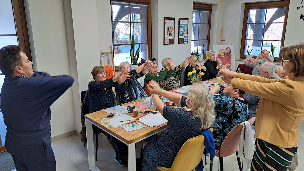 Ważną częścią spotkań były również kwestie związane ze zdrowiem psychicznym. Seniorzy rozmawiali o roli relacji społecznych, sposobach radzenia sobie ze stresem oraz o znaczeniu codziennych aktywności dla samopoczucia emocjonalnego. Z kolei blok poświęcony zdrowemu odżywianiu pozwolił im lepiej zrozumieć, jak dieta wpływa na energię, odporność i ogólny dobrostan.