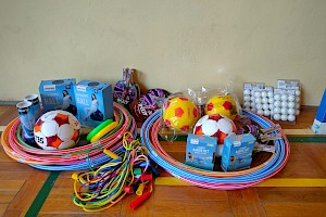 - brała udział w ćwiczeniach z wykorzystaniem piłek, skakanek, gum, hula-hop czy ringo.