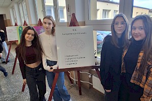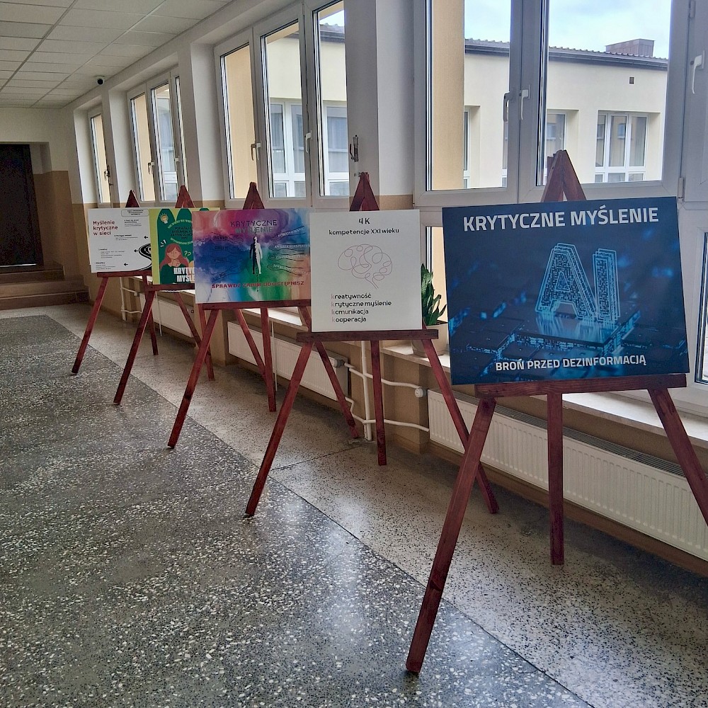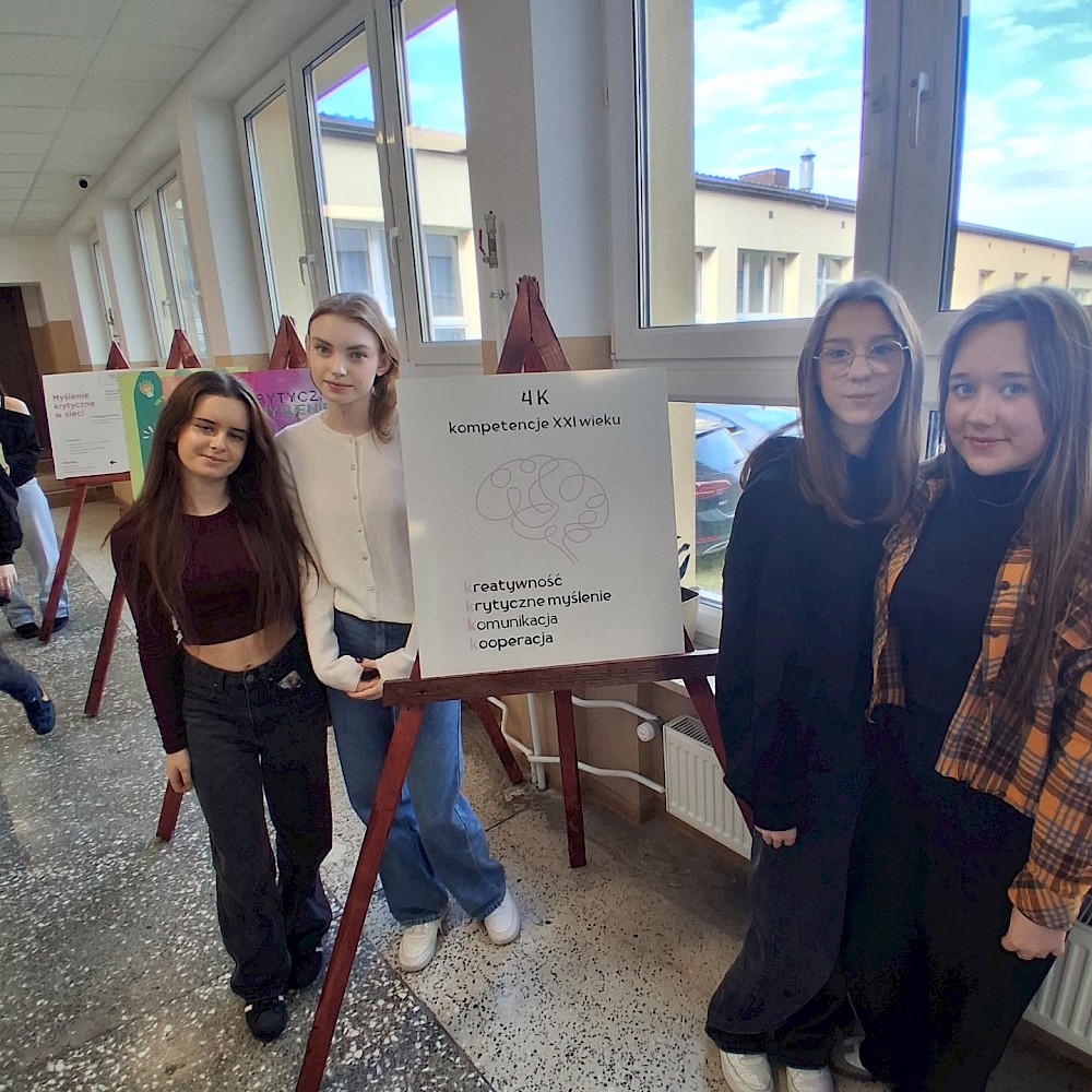 W ramach działań młodzież przygotowała autorskie projekty graficzne w programie Canva, które w atrakcyjny sposób prezentowały ideę kompetencji 4K. Najlepsze prace zostały wydrukowane i już na stałe udekorują korytarze szkoły, tworząc inspirujące przestrzenie edukacyjne dla wszystkich uczniów.
