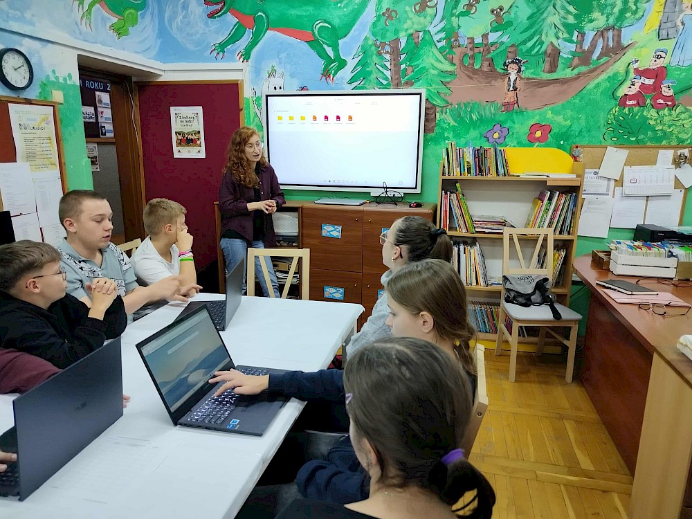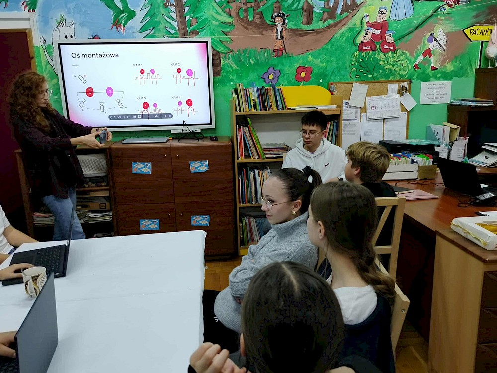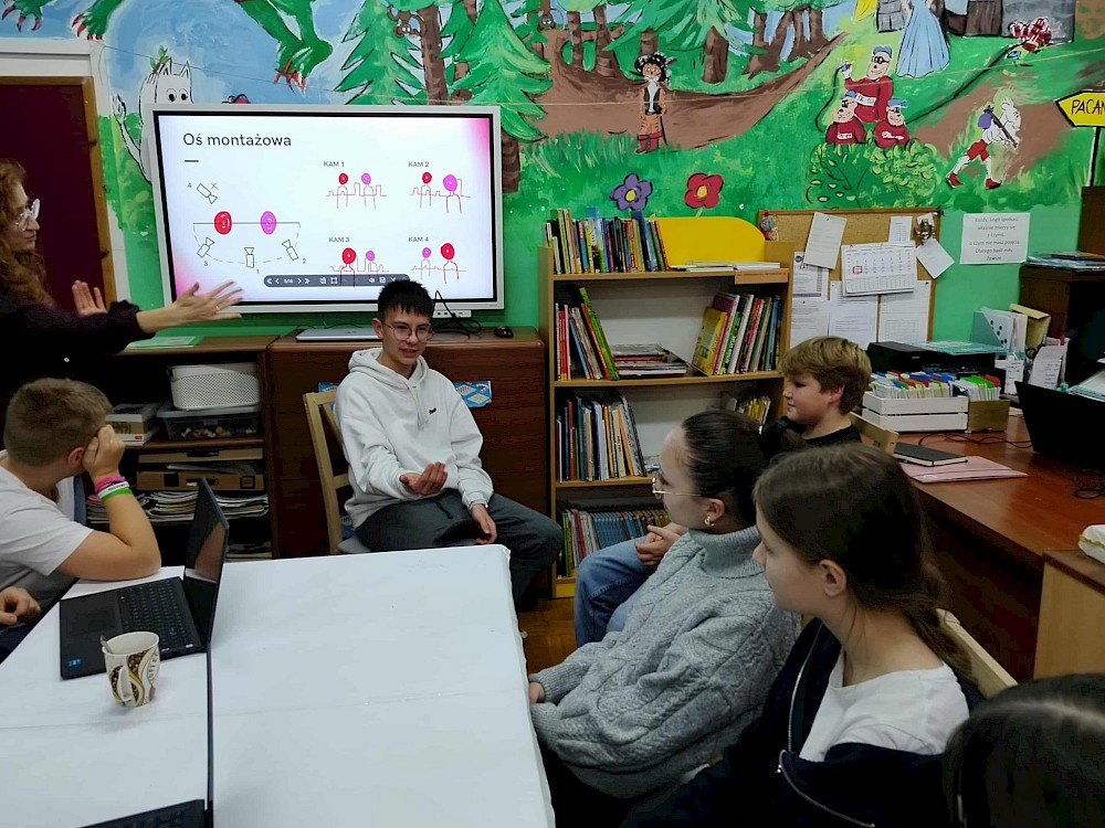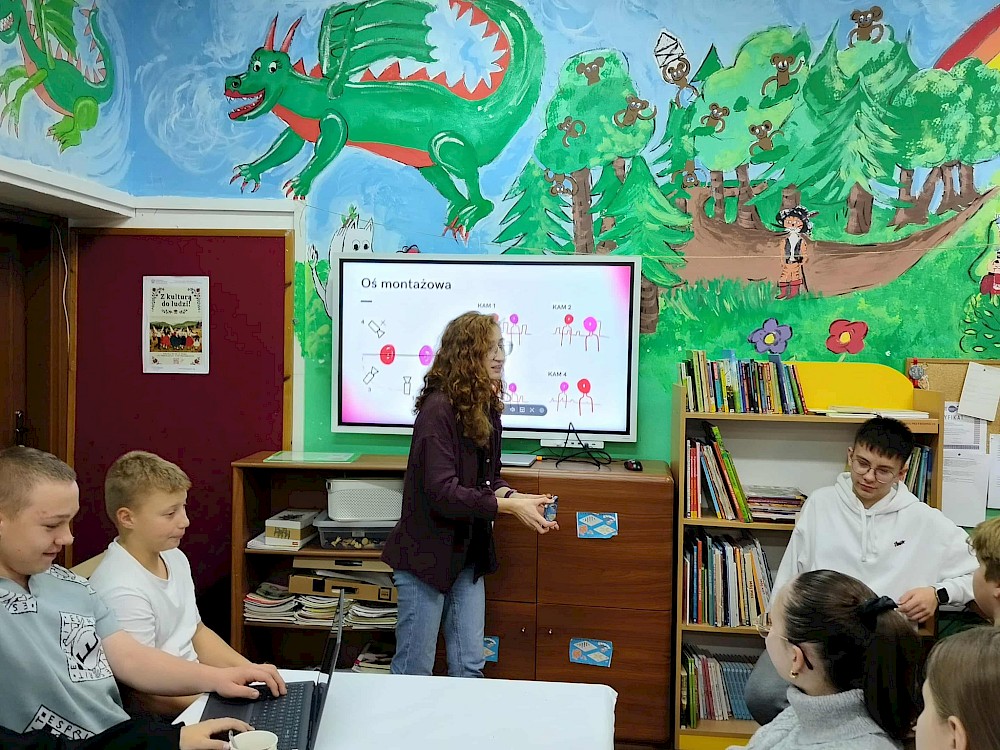 Warsztaty poprowadziła pani Aleksandra Wit, absolwentka Państwowej Wyższej Szkoły Filmowej, Telewizyjnej i Teatralnej w Łodzi, która wprowadziła uczestników w podstawy profesjonalnej realizacji obrazu i dźwięku. Uczniowie mieli okazję poznać narzędzia wykorzystywane przez twórców filmowych oraz dowiedzieć się, jak wygląda proces przygotowania materiału medialnego – od pomysłu po finalny efekt.