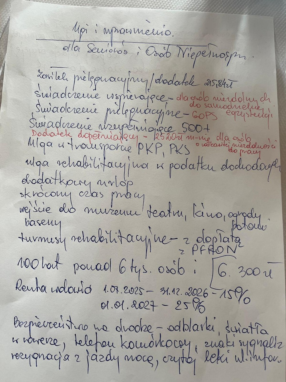 - jakie dokumenty są potrzebne do skorzystania z ulg – m.in. legitymacje emeryta-rencisty, orzeczenia o niepełnosprawności, karty parkingowe,
