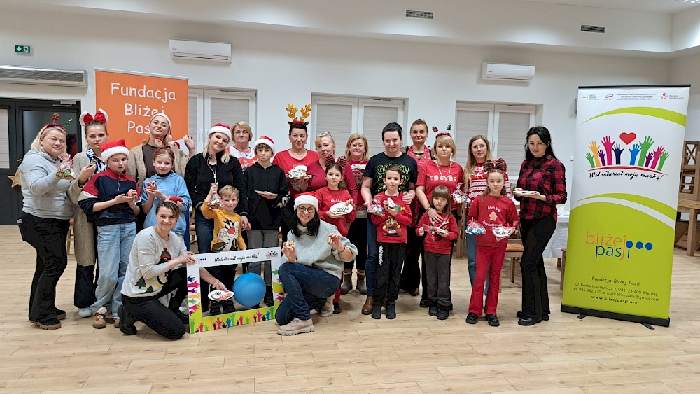W ramach projektu „Wolontariat moją marką!” zrealizowano wyjątkową inicjatywę, która w niecodzienny sposób połączyła wolontariuszy, ich rodziny oraz lokalną społeczność. Warsztaty pieczenia i dekorowania świątecznych pierniczków stały się nie tylko okazją do wspólnej pracy, ale również przestrzenią do budowania relacji, integracji międzypokoleniowej i dzielenia się pasją.