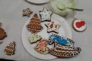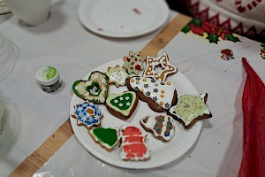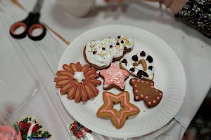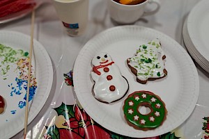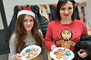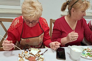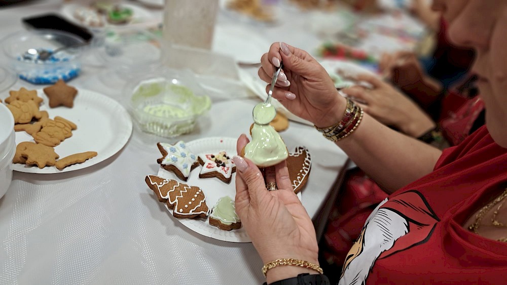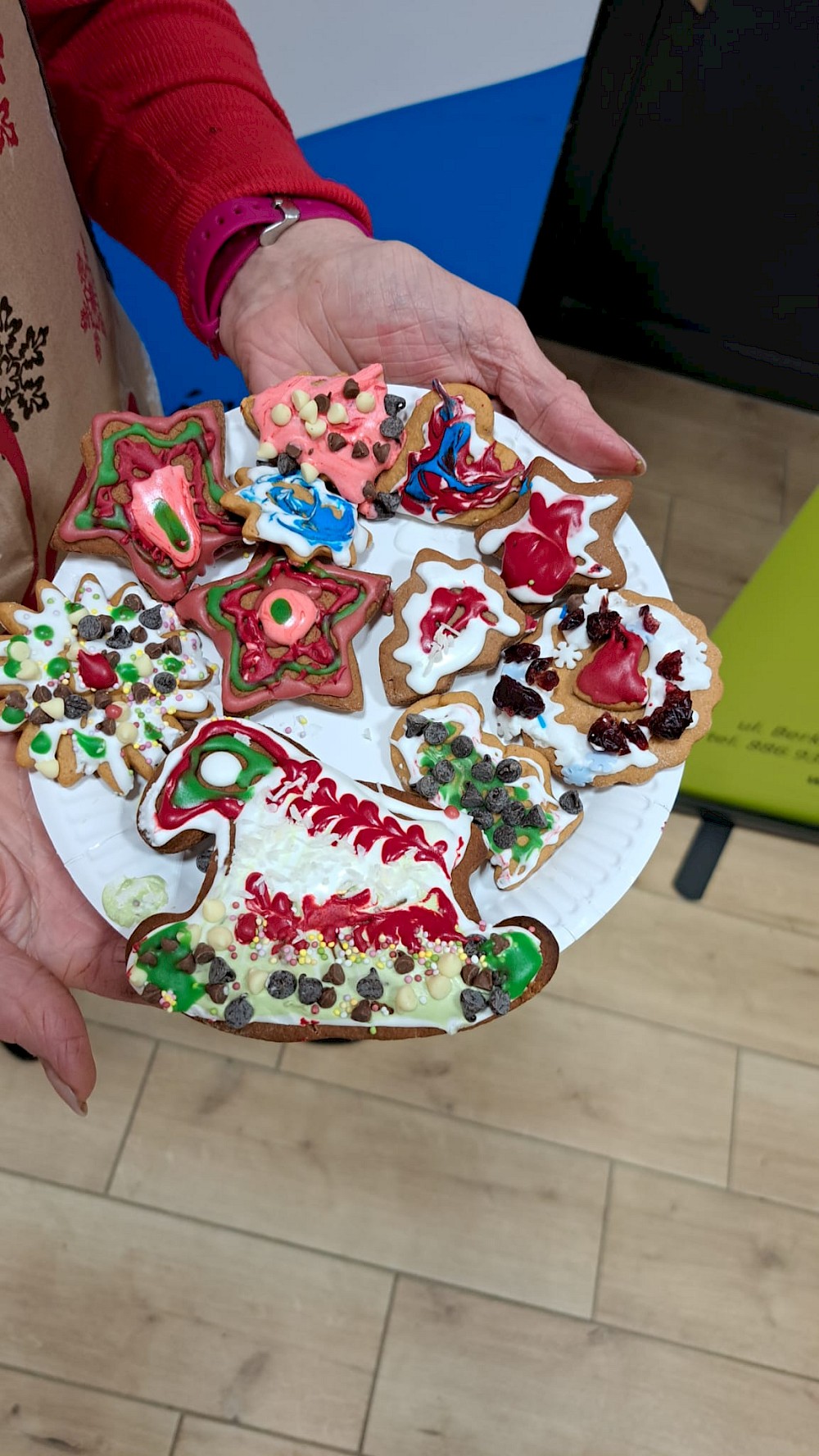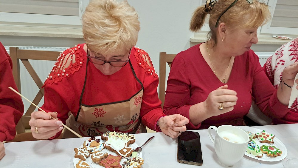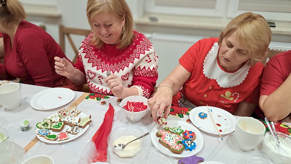 Podczas spotkania uczestnicy mieli możliwość wspólnie przygotowywać oraz ozdabiać pierniczki, poznając tajniki cukiernictwa pod okiem Sandry Gnap, która z zamiłowania i pasji zajmuje się wypiekami. Jej wiedza, zaangażowanie i otwartość sprawiły, że każdy – niezależnie od wieku czy doświadczenia – mógł poczuć się częścią twórczego procesu. Dzięki cennym wskazówkom prowadzącej powstawały nie tylko estetyczne i smakowite wypieki, lecz także wyjątkowa atmosfera pełna radości, współpracy i wzajemnej inspiracji.