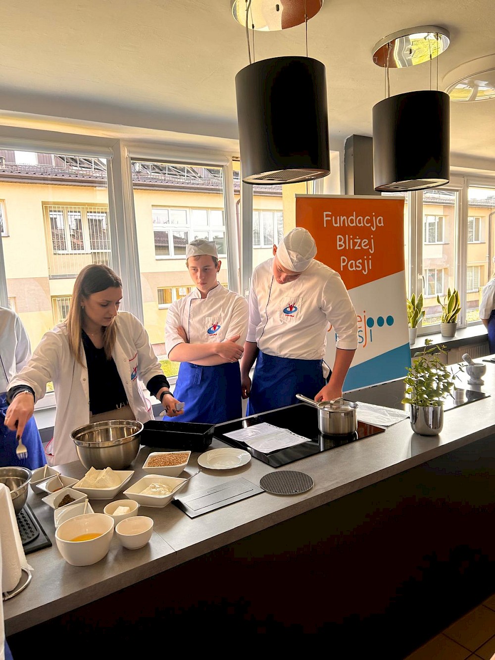 Podczas pracy uczniowie przygotowali tradycyjną formę wypieku – przypominającą pasztet, pieczoną w okrągłych lub prostokątnych foremkach. W trakcie zajęć nad salą unosił się charakterystyczny aromat ziemniaków, kaszy gryczanej i białego sera, wzbogacony zapachem skwarek i masła czosnkowego.