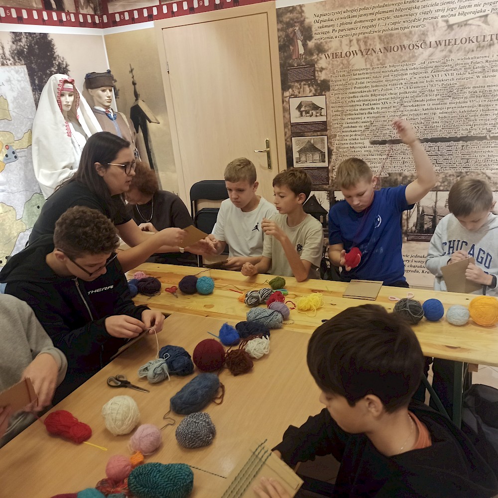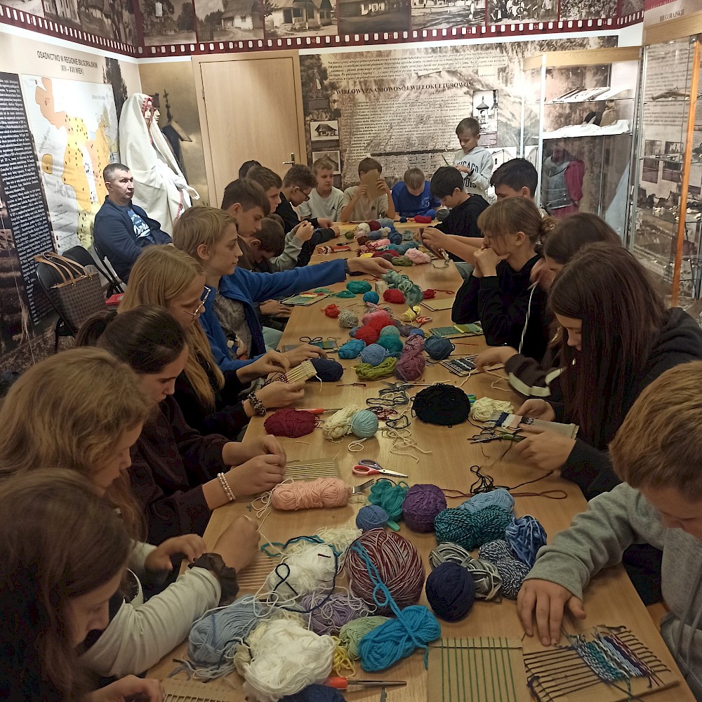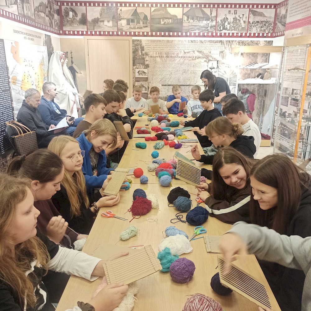 Pierwszym etapem inicjatywy był wyjazd do Biłgorajskiej Zagrody Sitarskiej, podczas którego uczniowie wzięli udział w lekcjach muzealnych „Nasze biłgorajskie”. Mieli okazję odkryć, jak dawniej wyglądało życie na Ziemi Biłgorajskiej – jakie panowały zwyczaje, jak tworzono rękodzieło i w jaki sposób rzemiosło łączyło ludzi w codziennej pracy. Zajęcia zostały wzbogacone o warsztaty artystyczne, podczas których uczestnicy wykonali własne miniaturowe krosna.