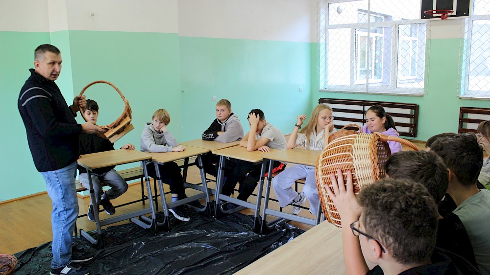 W kolejnych dniach szkołę odwiedzili lokalni rzemieślnicy, którzy zaprezentowali tradycyjne techniki wyplatania z wikliny oraz poprowadzili warsztaty tworzenia świec woskowych. Spotkania te były nie tylko okazją do nauki, ale również do rozmów o pasji, tradycji i przekazywaniu umiejętności z pokolenia na pokolenie.