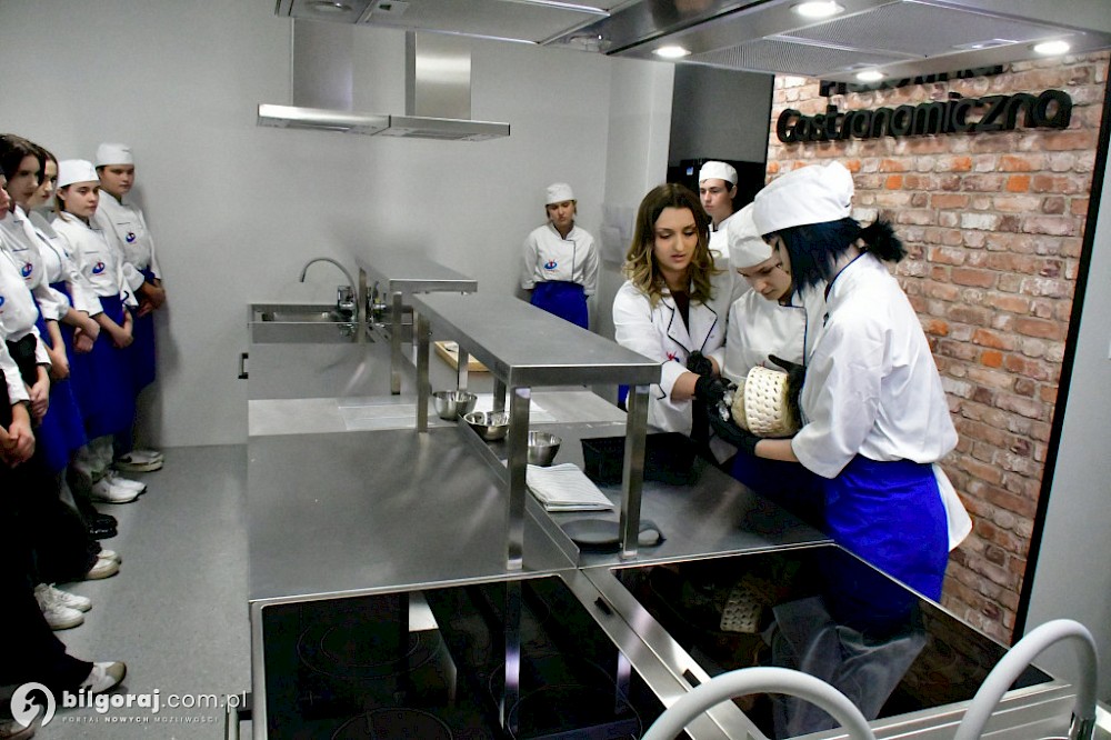 W ramach pierwszej inicjatywy projektu „Z kulturą do ludzi” uczniowie ZSZiO w Biłgoraju wzięli udział w wyjątkowych warsztatach kulinarnych pt. „Sekrety tradycyjnego wypieku chleba”. Zajęcia odbyły się w nowej pracowni gastronomicznej pod kierunkiem nauczyciela przedmiotów zawodowych, a ich celem było przybliżenie młodzieży dawnych zwyczajów i tradycji związanych z pieczeniem chleba.