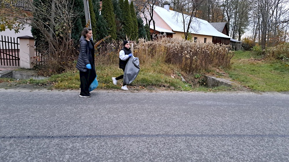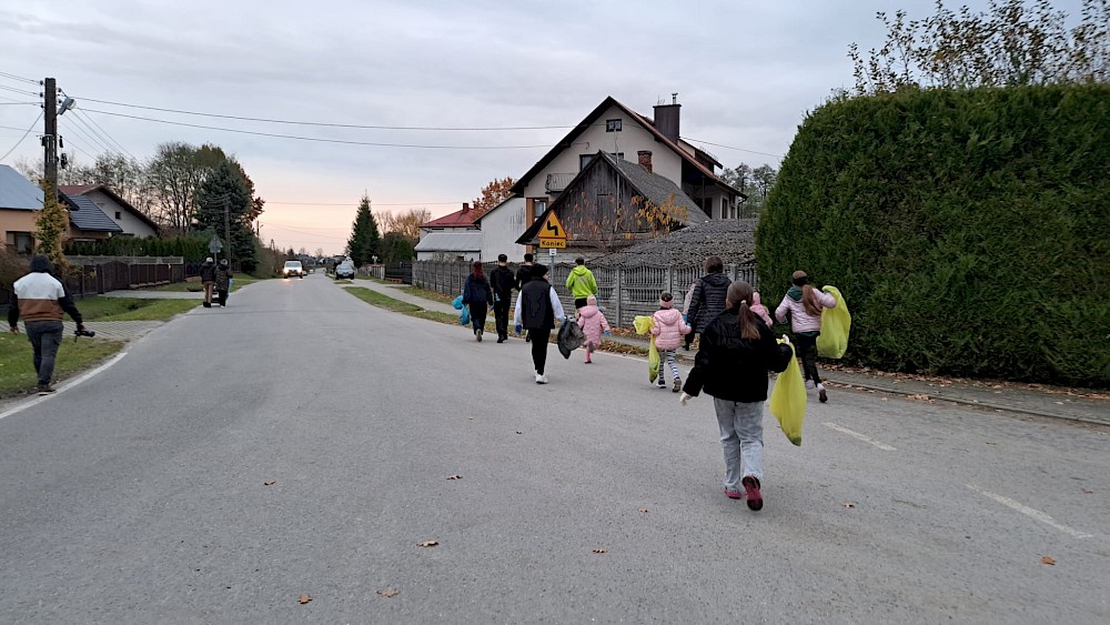 W czwartkowe popołudnie mieszkańcy – dzieci, młodzież i dorośli – wyposażeni w rękawiczki i worki na odpady wyruszyli, by oczyścić teren wsi. Sprzątano pobocza dróg, rowy i skraje lasów. Dzięki wspólnemu zaangażowaniu udało się zebrać kilka worków śmieci, które zostały odpowiednio posegregowane i przekazane do utylizacji.