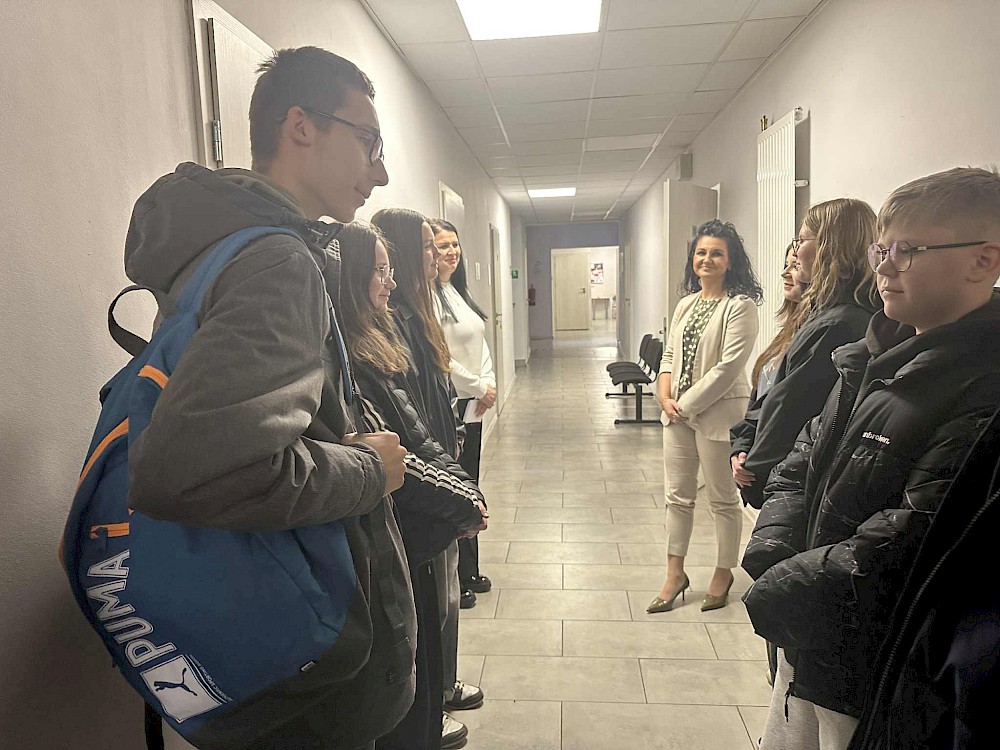 Uczniowie zostali serdecznie powitani przez Zastępcę Wójta panią Edytę Sarzyńską, Wicestarostę panią Beatę Strzałkę oraz pracowniczki — panią Katarzynę Pisklak i panią Halinkę Wasil, a także przez pracowników poszczególnych referatów Urzędu Gminy. Każde spotkanie było okazją do rozmów i zadawania pytań dotyczących pracy urzędów, ich zadań oraz roli, jaką pełnią przedstawiciele samorządu.
