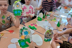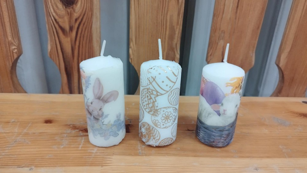 Dzieci wykonywały pisanki i świece metodą dekupażu.
