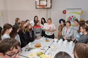 Pierwsza część warsztatów odbyła się w Szkole Podstawowej w Gromadzie 25 marca 2025r. Poprowadziła ją grupa wolontariuszy z Dorotą Patłaczyńską-Brodziak na czele.