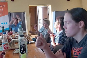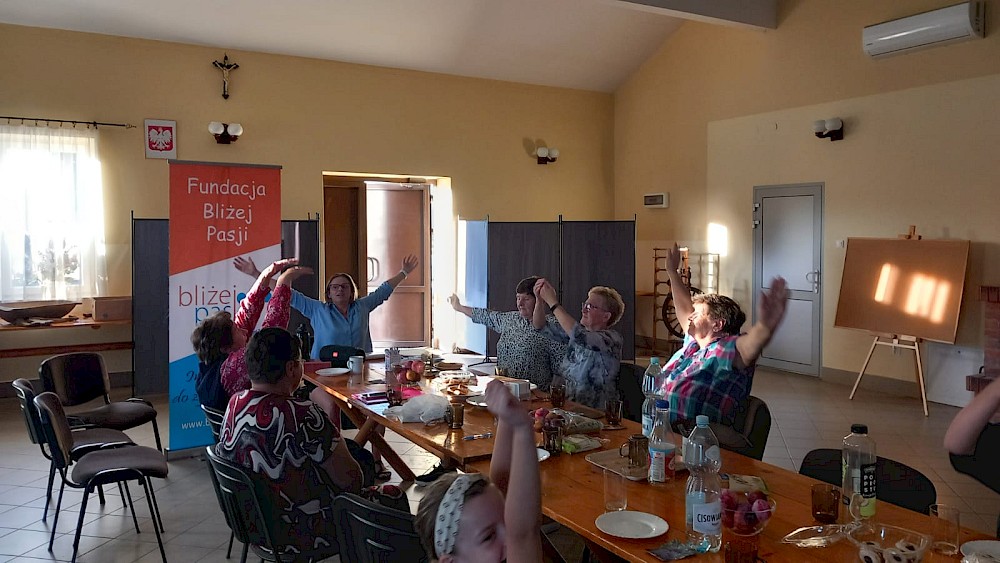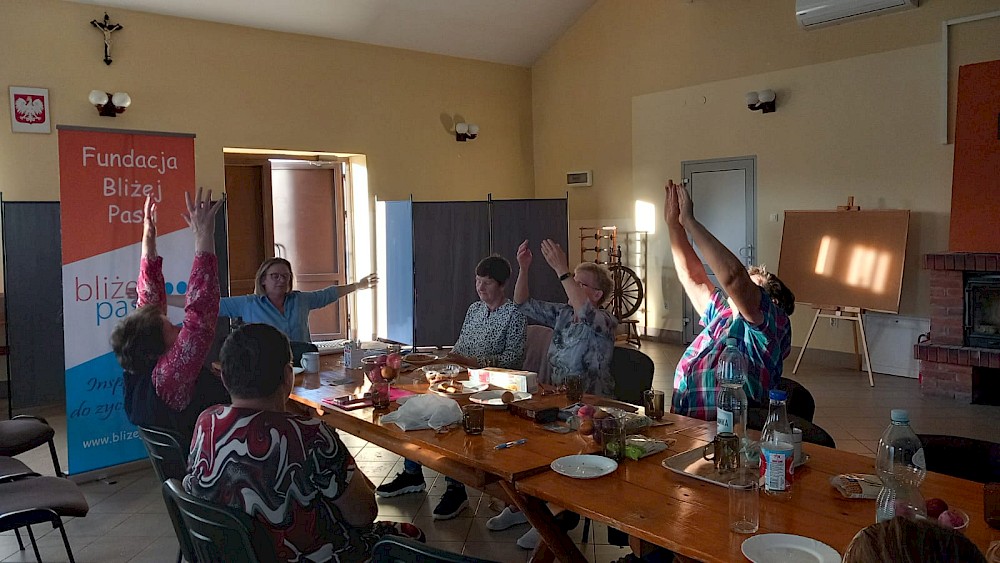 Prowadząca przećwiczyła z uczestnikami aktywności fizyczne wspierające uważność. Przekazała też pomysły na proste ćwiczenia oddechowe, relaksacyjne i ruchowe dostosowane do możliwości seniorów, które można łatwo wprowadzić do codziennej rutyny.