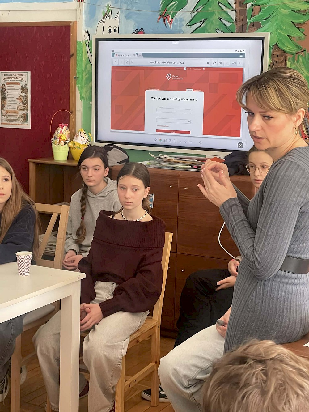 Podczas warsztatów uczestnicy zostali również zapoznani z Systemem Obsługi Wolontariatu – narzędziem, które wspiera planowanie działań, dokumentowanie aktywności oraz rozwój zaangażowania społecznego. Dzięki temu młodzież oraz nauczyciele zyskali praktyczną wiedzę, która pomoże im jeszcze skuteczniej zarządzać wolontariatem oraz organizować inicjatywy.