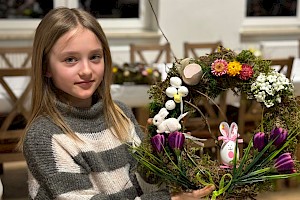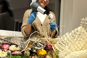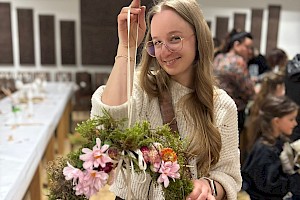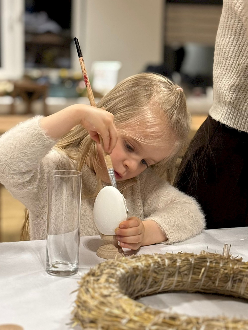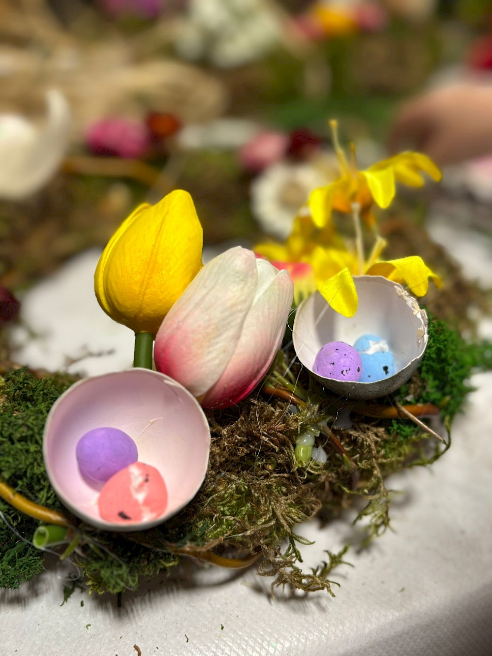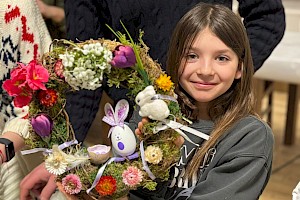 Zajęcia poprowadziła wolontariuszka Kasia Myszak ze „Świata Fantazji”, która z dużym zaangażowaniem dzieliła się swoją wiedzą i umiejętnościami. Uczestnicy mieli okazję poznać różnorodne techniki tworzenia wielkanocnych dekoracji, a także samodzielnie wykonać unikalne wieńce i kolorowe pisanki. Każda praca była wyjątkowa i odzwierciedlała indywidualną kreatywność jej autora.