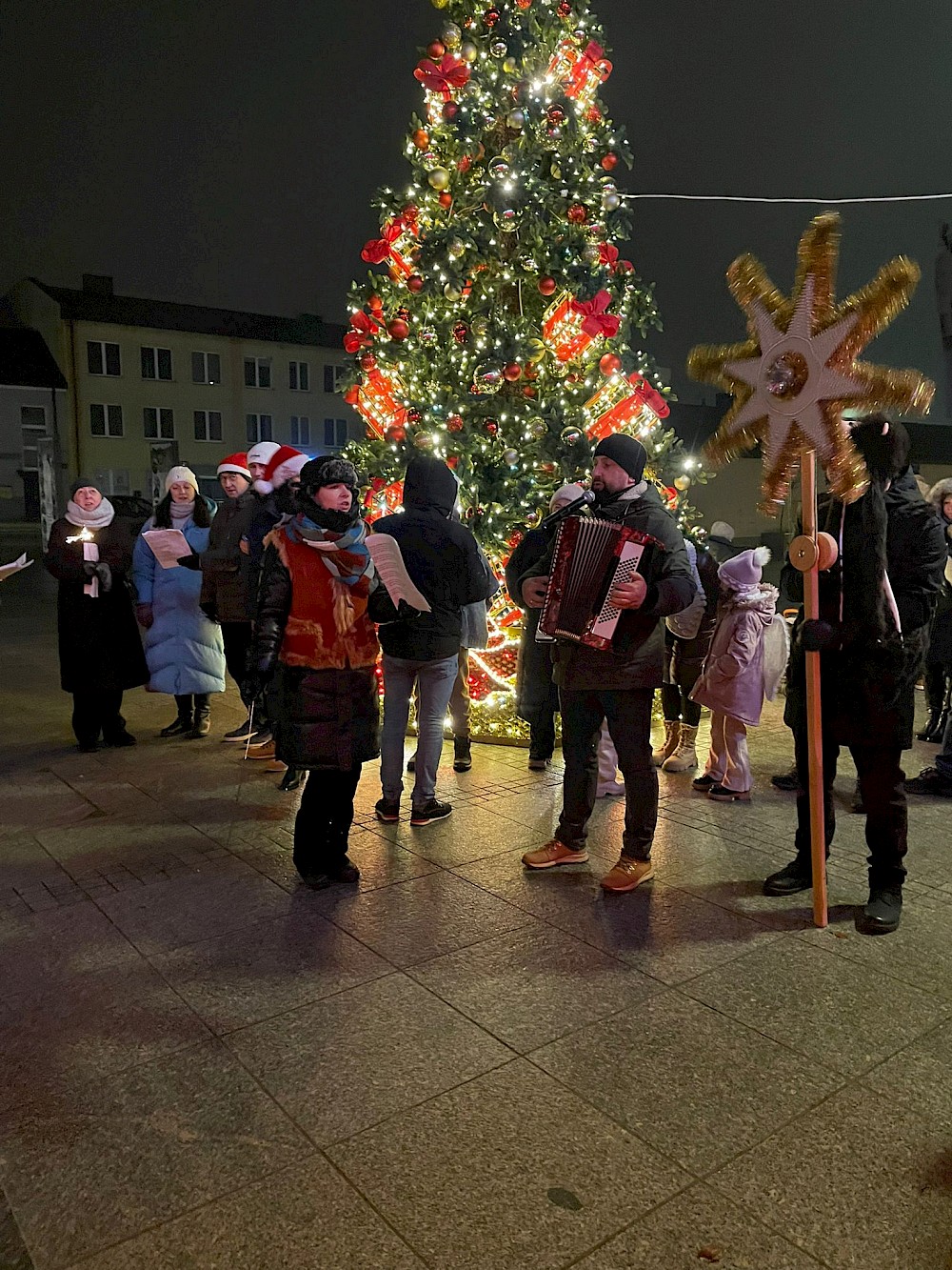 Dzięki Wolontariuszom plac przy Urzędzie Miasta zamienił się w miejsce pełne życzliwości, rozmów i prawdziwie świątecznego klimatu. To wydarzenie było nie tylko okazją do wspólnego kolędowania, ale także przypomnieniem, jak ważne są drobne gesty, wspólnie spędzony czas i obecność drugiego człowieka – szczególnie w okresie okołoświątecznym.