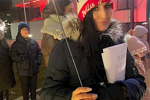 Tego dnia Wolontariusze wyruszyli z kolędą w świat, niosąc radość, uśmiech oraz ciepło, które tak bardzo kojarzy się ze świętami. Ich otwartość i zaangażowanie sprawiły, że plac szybko wypełnił się dźwiękami znanych i lubianych kolęd. Śpiew, który rozbrzmiewał w sercu miasta, przyciągał kolejne osoby – jedni zatrzymywali się na chwilę, inni dołączali do wspólnego kolędowania, tworząc niezwykłą, pełną serdeczności wspólnotę.