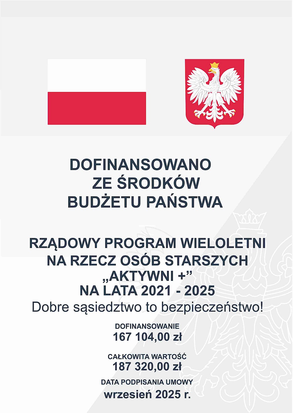 Projekt dofinansowany ze środków rządowego programu wieloletniego na rzecz Osób Starszych „Aktywni+” na lata 2021-2025. Edycja 2025.